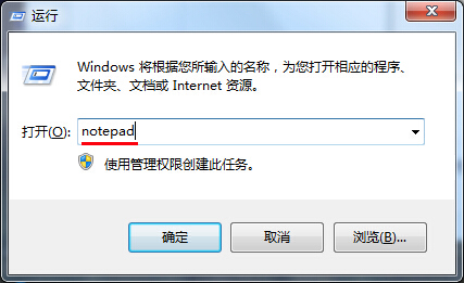 1、使用组合键(win键+r)打开运行窗口,并输入“notepad”,按回车键新建一个记事本,如下图所示: